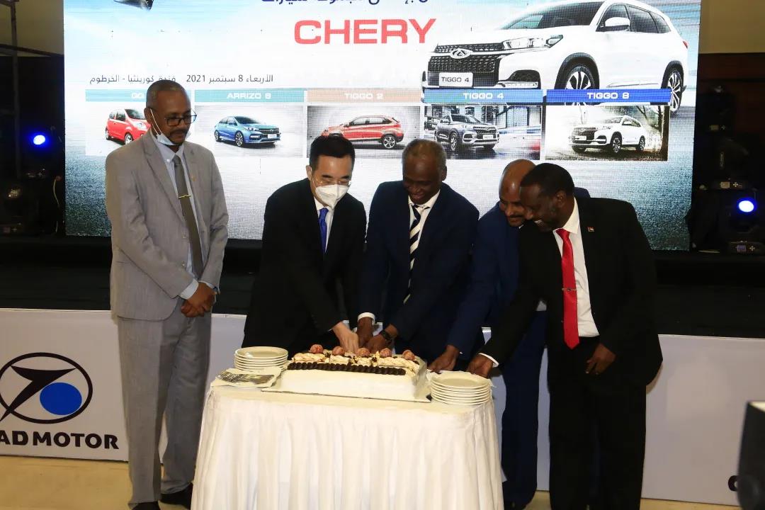 2021年9月8日,驻苏丹大使马新民出席奇瑞公司落户苏丹暨新车发布会并致辞。苏工业部次长伊斯马易·沙姆斯丁,吉亚德集团董事长阿卜杜拉、吉亚德汽车公司总经理法提赫等出席并分别致辞。奇瑞汽车公司国际部总经理张贵兵发表视频致辞。马大使和沙姆斯丁次长共同切蛋糕庆祝,并为新上市车型揭幕。